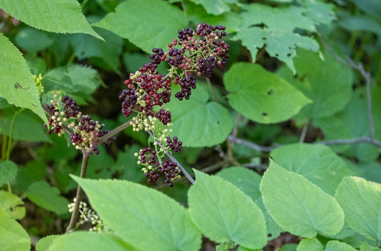 Hardy in zones 3 through 8, spikenard is a great choice for adding structure and depth to shaded or woodland gardens, and its robust nature means it requires minimal maintenance. Grows in full sun to part shade, and is drought tolerant once established. Spikenard is great for naturalizing and will eventually spread over time via seeds and rhizomes where it will form a thicket.