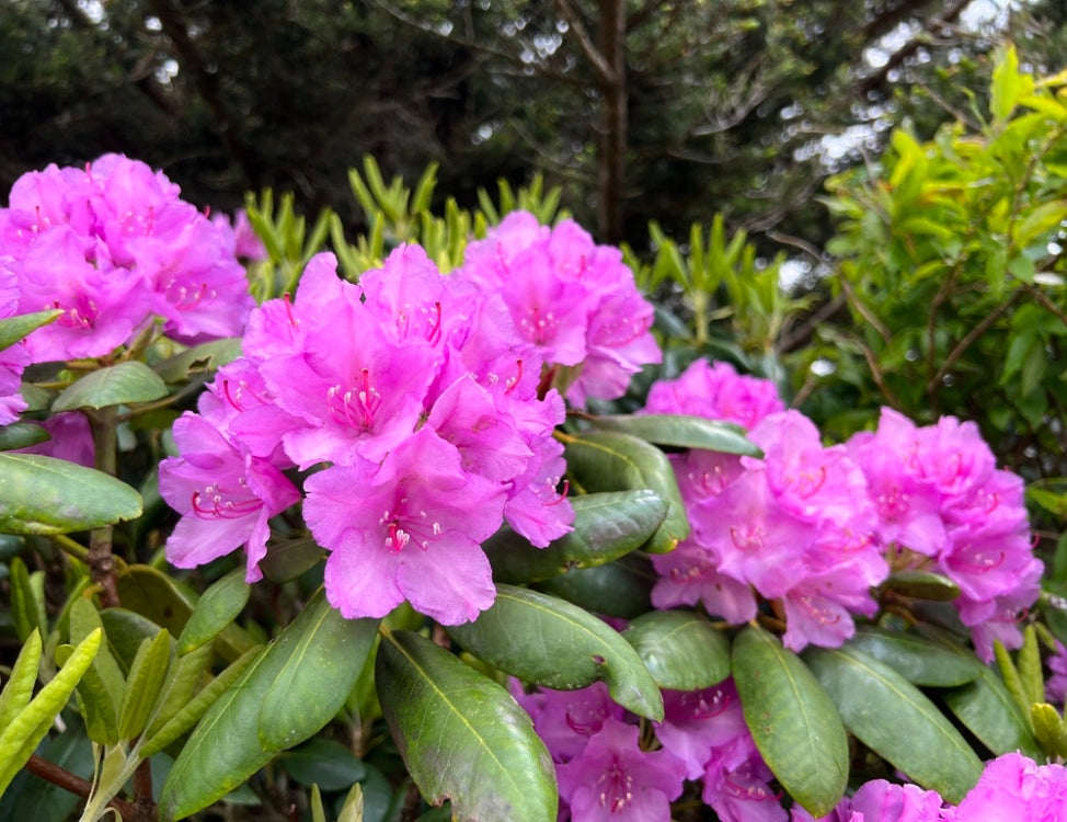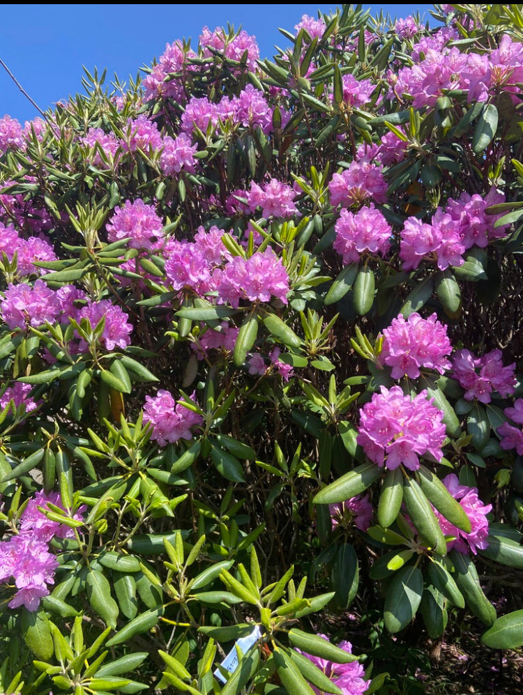 The straight species Catawba rhododendron (Rhododendron catawbiense) is an icon in the Appalachian Mountain range! It is a woody broadleaf evergreen, multi-stemmed shrub that typically matures from 6 to 10 feet tall.
