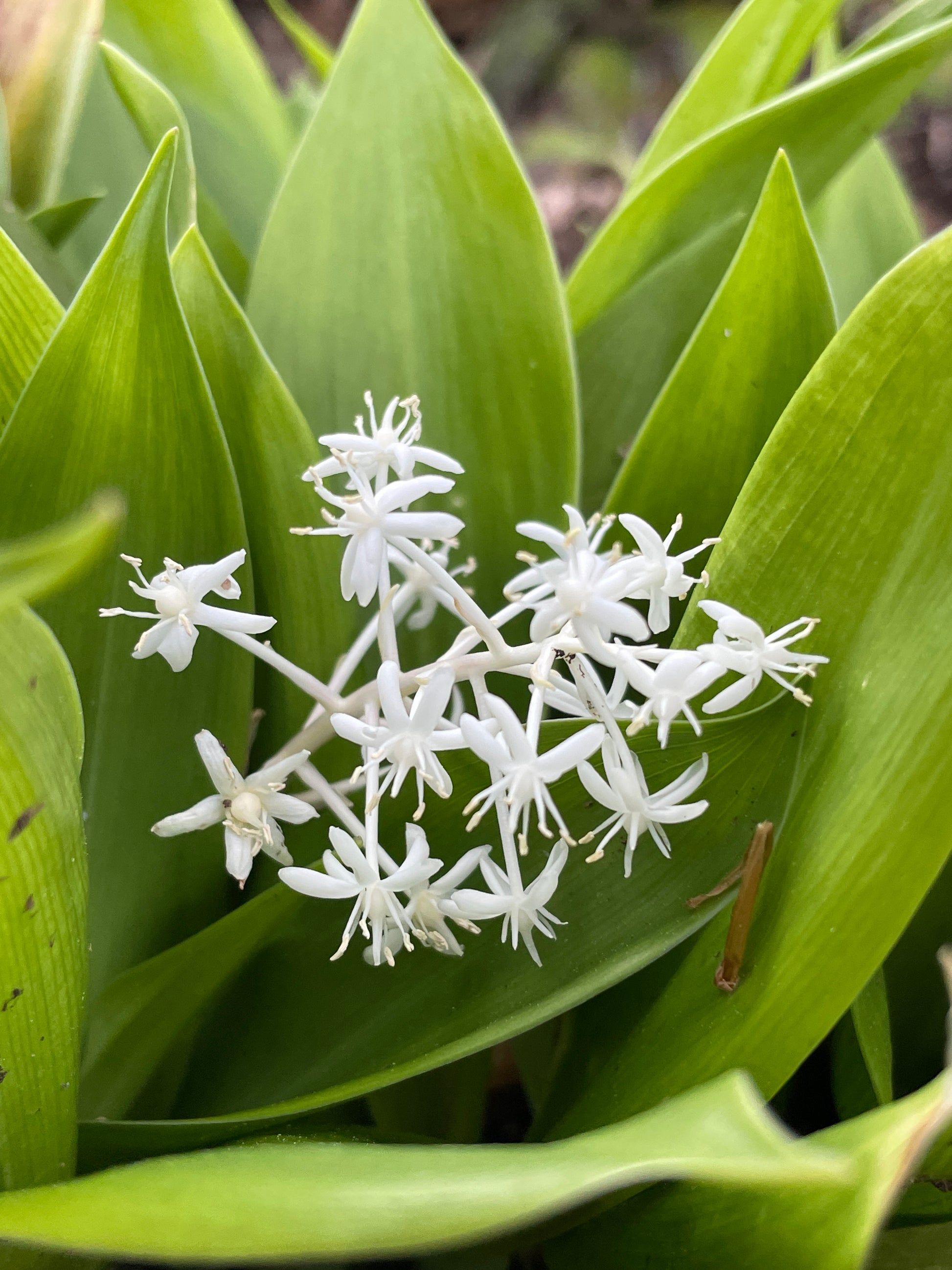 An evergreen groundcover for dry shade, Spierantha, also known as false lily of the valley, produces beautiful globes of white flowers in spring that pop against the dark green evergreen leaves. The plant grows slowly to form a mat that is 8-12" tall. Rare in the trade. Non-native.